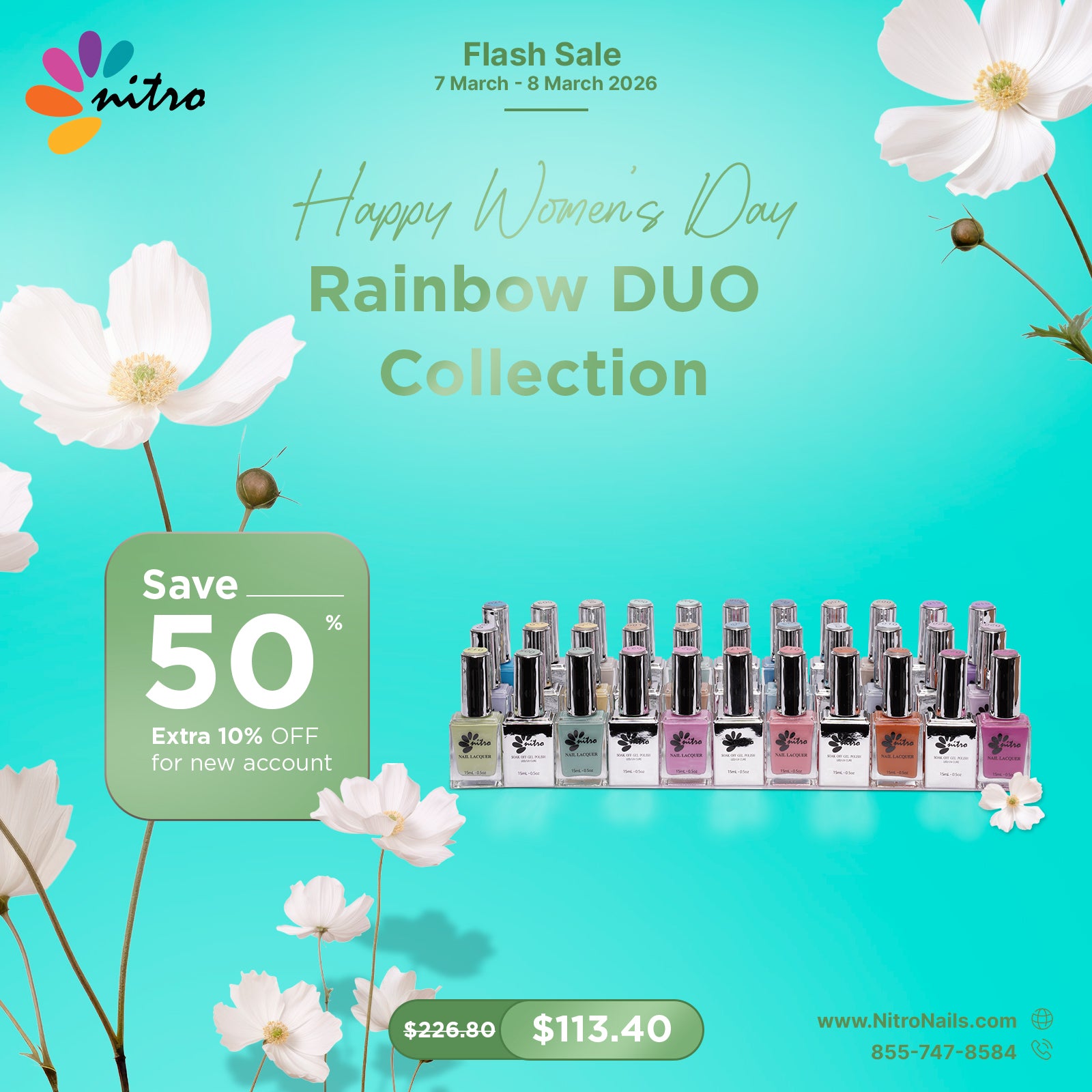 Nitro Rainbow Collection includes 24 pastel colors, available in powder, gel polish, and nail lacquer.